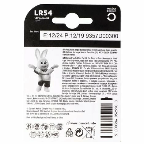 - Duracell AG10, LR54, LR1130, 189, RW89, V10GA