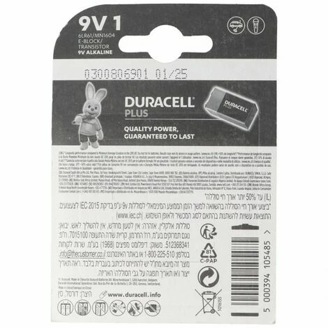 DURACELL PLUS MN1604 9V E Block 6LR61